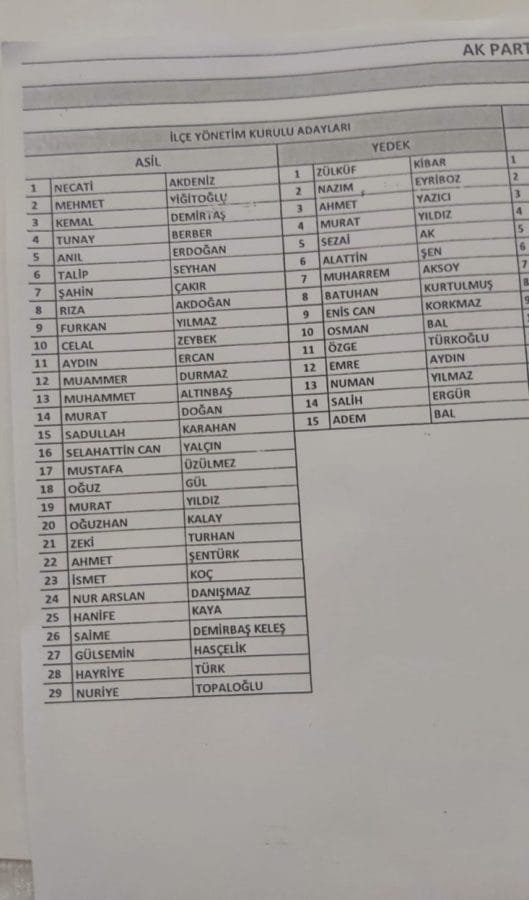 LİSTE ŞU ŞEKİLDE OLUŞTU: