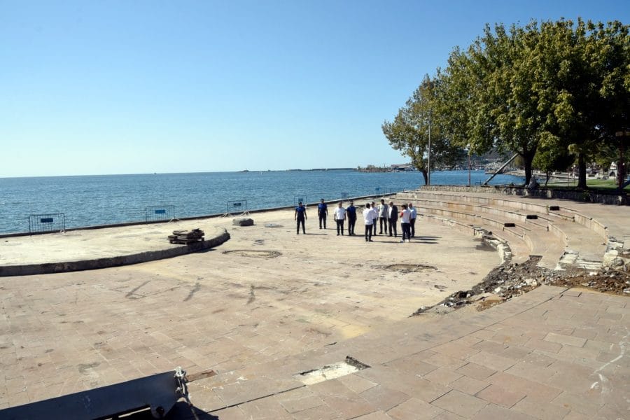 Kdz. Ereğli’de 19 Kasım 2023 tarihinde yaşanan büyük felakette zarar gören sahilde karaya oturan Pallada yük gemisinin son parçaları çıkartıldıktan sonra belediye ekipleri Amfi Tiyatro’yu yenileme çalışmalarına başladı. Belediye Başkanı Halil Posbıyık, yerinde incelemede bulunarak; “Amfi Tiyatro’yu da kısa zamanda yenileyerek halkımızın kullanımına açacağız” dedi.