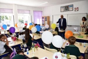 Kent protokolünün katıldığı programdan sonra öğretmenlerin daveti üzerine sınıfları gezen Başkan Posbıyık, okula merhaba diyen çocuklara eğitim hayatlarında başarılar diledi. Minik öğrenciler yaptıkları resimleri Başkan Posbıyık’a hediye ettiler.