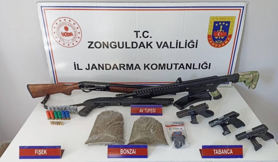 Zonguldak İl Jandarma Komutanlığı ekiplerince, Uyuşturucu ile Mücadele kapsamında KOM Şube Müdürlüğü koordinesinde Adli Makamlardan alınan arama kararları doğrultusunda, (5) şüpheli şahsa yönelik Kdz.Ereğli, Çaycuma ve Gökçebey ilçeleri mülki sınırları içerisinde 02 Temmuz 2024 tarihinde eş zamanlı olarak icra edilen (3) ayrı operasyonda;– (1.041) Gram Bonzai,– (264) Kök Kenevir Bitkisi,– (64) Gram Bonzai Ham Maddesi,– (4) Gram Kubar Esrar,– (4) Adet Ruhsatsız Tabanca,– (32) Adet Fişek,– (3) Adet Ruhsatsız Av Tüfeği,– (14) Adet Av Tüfeği Fişeği ele geçirilerek (5) şüpheli şahıs yakalanmıştır. Operasyon kapsamında Adli makamların talimatları doğrultusunda hakkında işlem yapılan (5) şüpheli şahıstan (1)’i ifadesi alınarak serbest bırakılmış, (1)’i Adli Kontrol Şartıyla serbest bırakılmış, (3)’ü ise tutuklanarak Ceza İnfaz Kurumuna teslim edilmiştir. Kamuoyuna saygı ile duyurulur.