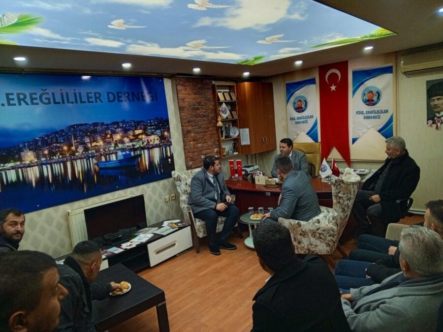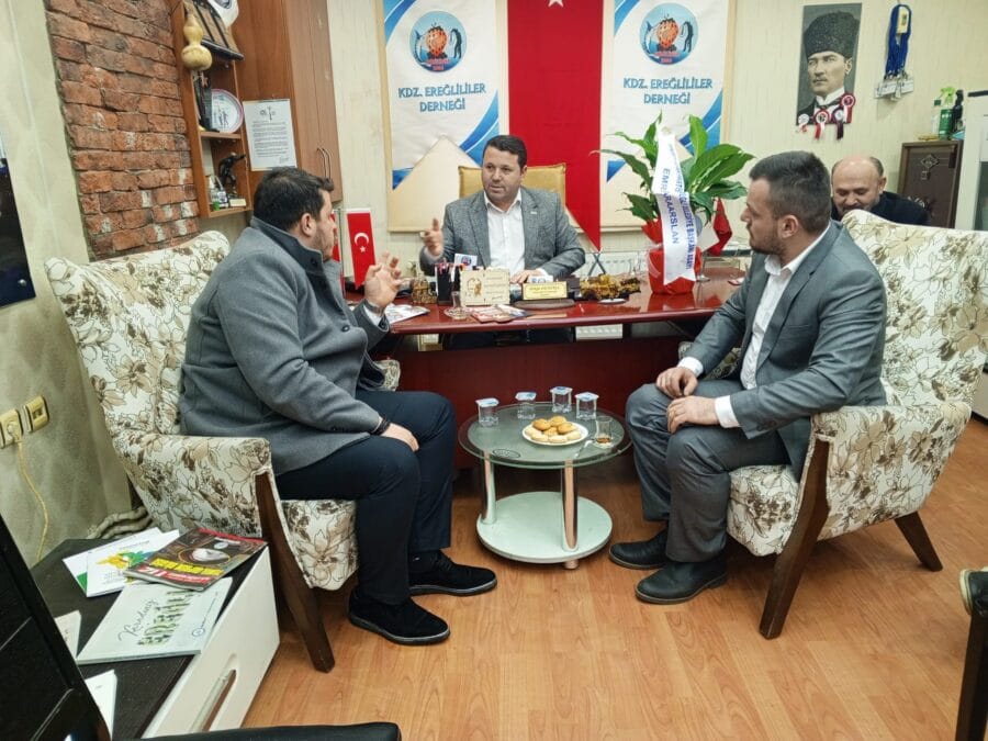 Karaarslan, Meclis Üyesi Adayları; Özcan Özdemir, Aykut Gönültaş, Efkan Murat Gönültaş ile beraber Kdz. Ereğlililer Derneği Başkanı Birkan Demirel’i makamında ziyaret etti.
