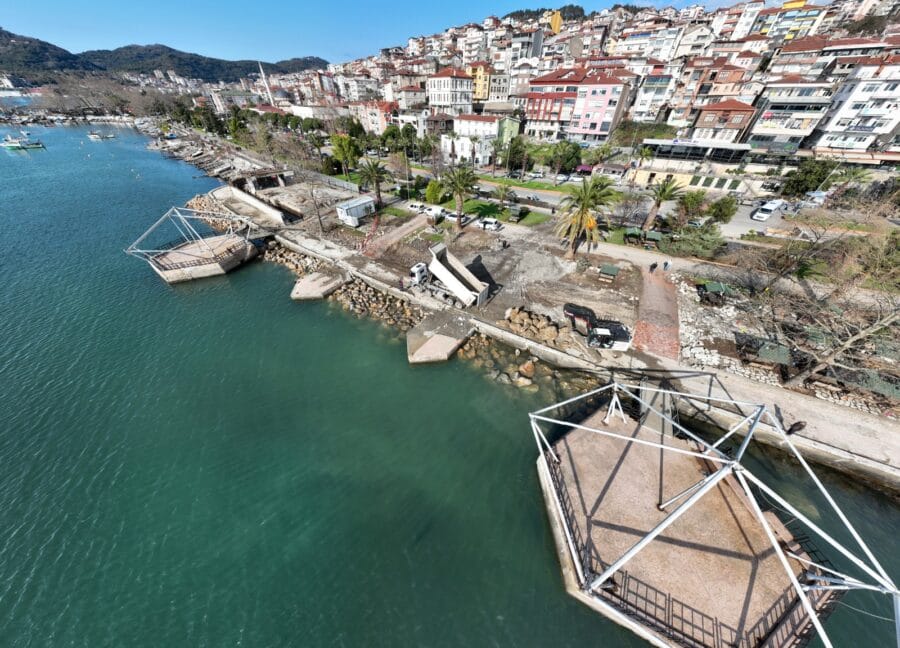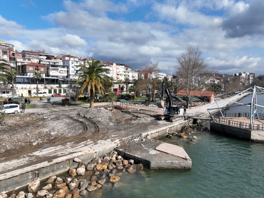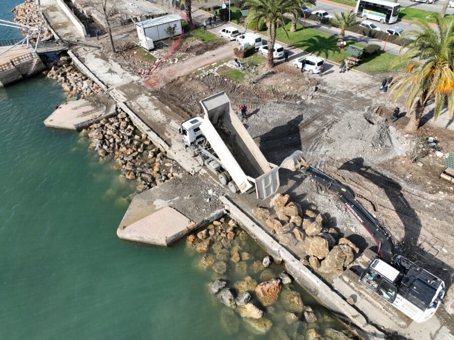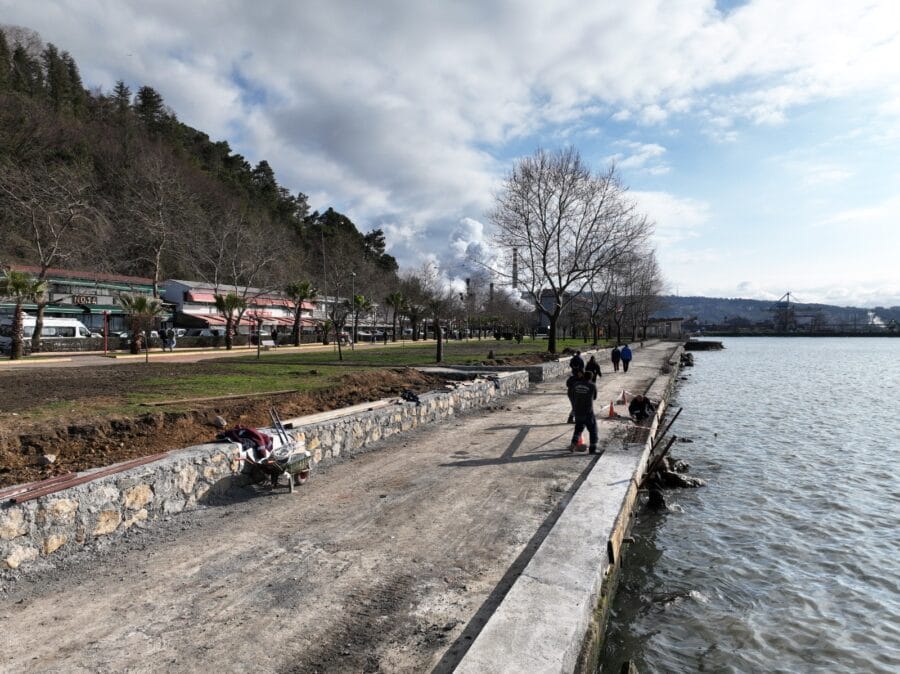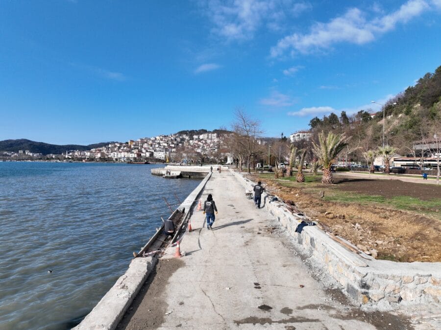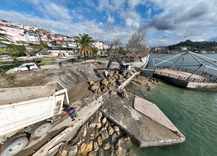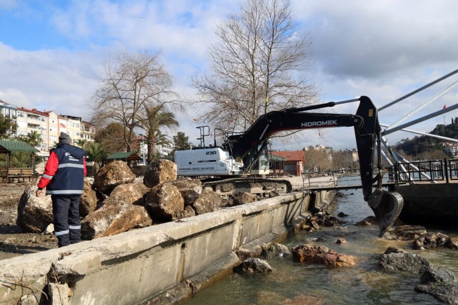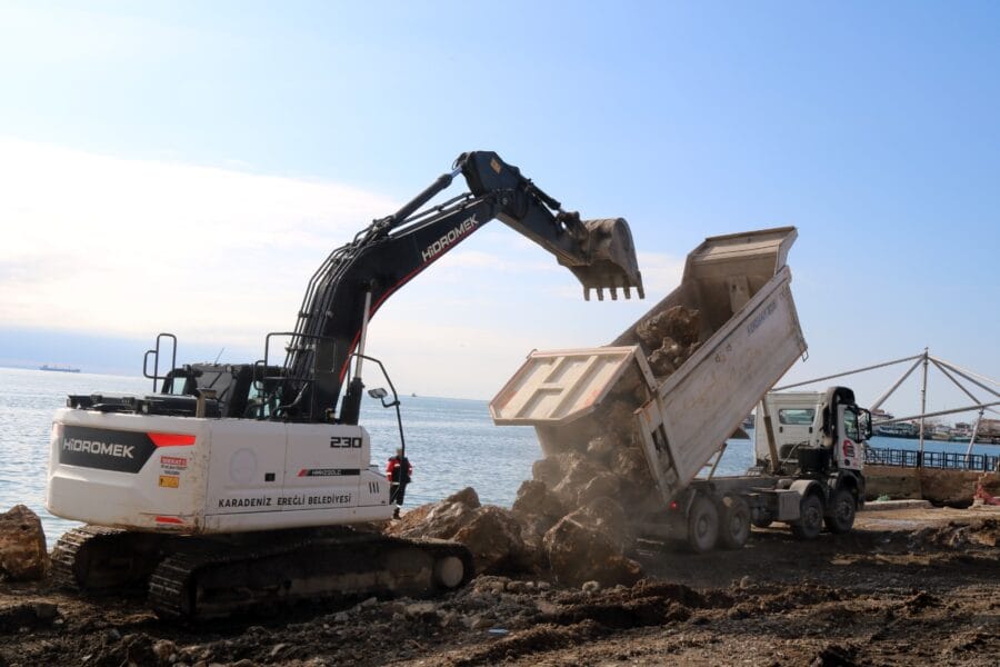 19 Kasım’da yaşanan doğal afette büyük zarar gören Kdz. Ereğli sahili, Belediye Başkanı Halil Posbıyık’ın önderliğinde ilmek ilmek yeniden örülüyor. Yıkılan yerler onarılıyor, sahil boyu dalgalara karşı taşlarla güçlendiriliyor.