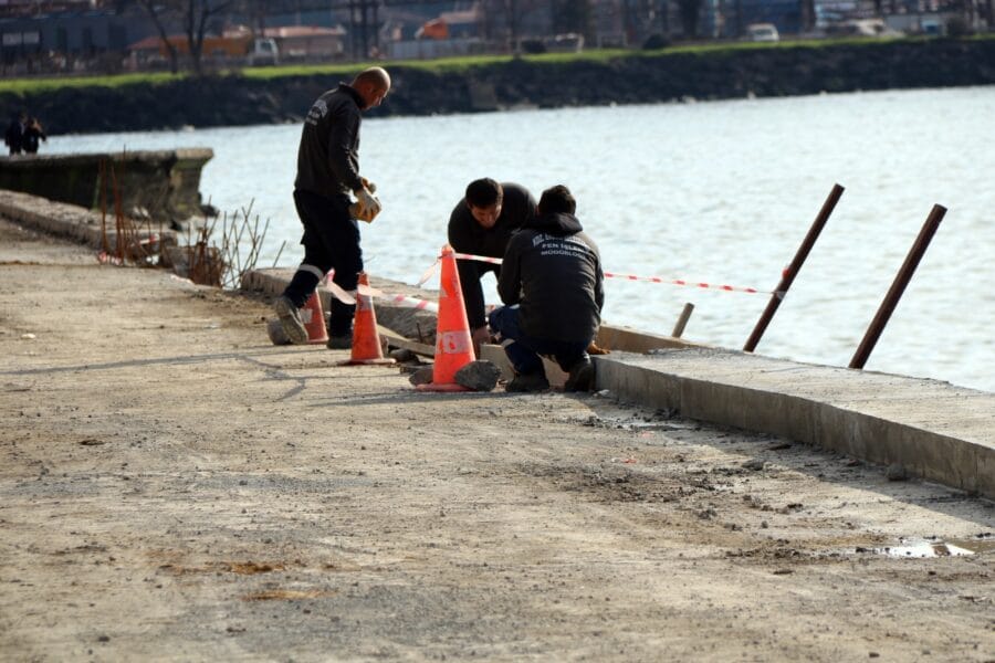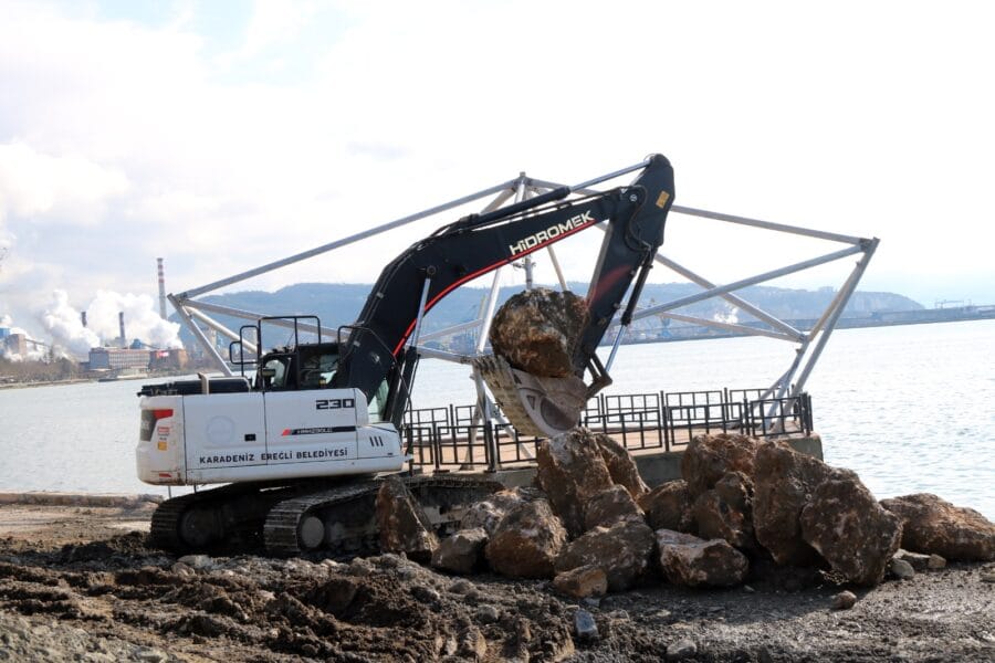 Sahilde yıkılan yerler, Fen İşleri Müdürlüğü ekiplerince onarılıyor, sahil boyu dalgalara karşı büyük taşlarla güçlendiriliyor. Başkan Halil Posbıyık’ın Ereğli halkına verdiği ‘Yaz ayına sahili yetiştirme’ sözü üzerine ekipler çalışmalarını hummalı bir şekilde sürdürüyor. 3 aşamalı planlanan çalışmalar sonunda Kdz. Ereğli sahili yine Türkiye’nin en güzel sahillerinden biri haline gelecek.