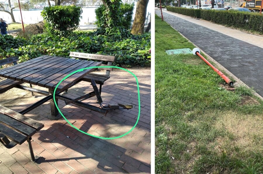 Çevre İl ve İlçelerden de ziyaretçi akınına uğrayan sahilde, son günlerde vandalların halkın ortak kullanım alanlarındaki banklara, aydınlatma lambalarına, futbol sahası tel örgülerine, oturaklara, banklara, kedi – köpek mama ve su kaplarına zarar verdikleri tespit edildi.