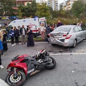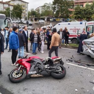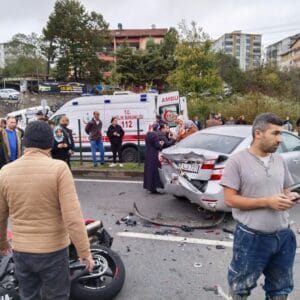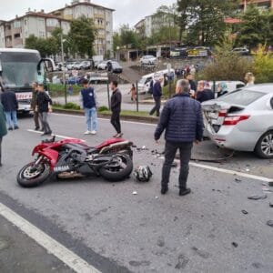 Çarpmanın etkisiyle her iki araç’ta büyük çapta hasar meydana gelirken; motosikletten düşen sürücü başından ağır yaralandı.
