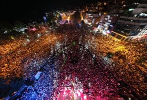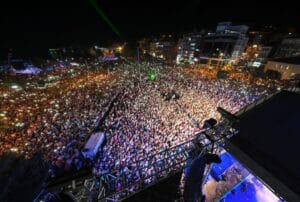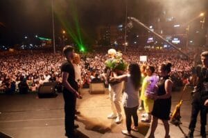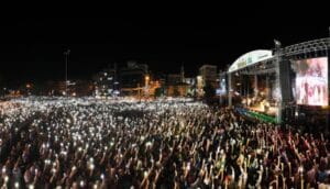 Açık hava halk konserinde sahne alan Semicenk’in şarkılarına yüzbinlerce insan eşlik etti. Birbirinden güzel şarkıları ve 3 saat süren sahne performansıyla unutulmaz bir gece yaşatan Semicenk, müzisyen arkadaşları Doğu Swag ve Rast ile de düet yaptı. Semicenk, Rast’ın doğum gününü de sahnede pasta keserek kutladı.