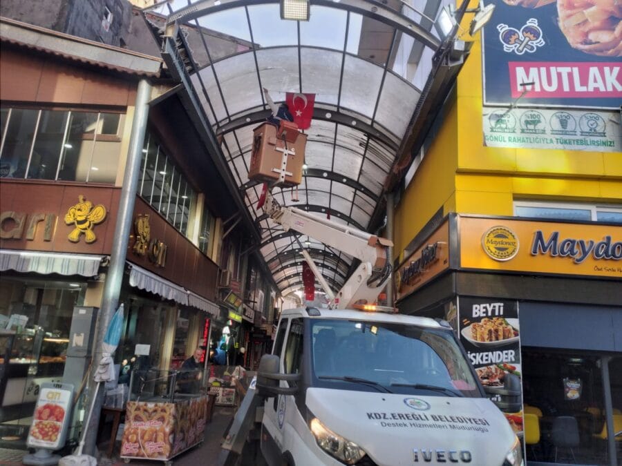 Kdz. Ereğli’de 19 Kasım’da meydana gelen tarihin en büyük afetinin izlerini silmek için belediye tüm alanlarda çalışmalarına devam ediyor. Kdz. Ereğli Belediyesi Destek Hizmetleri Müdürlüğü de, kentte zarar gören aydınlatmaları tamir ediyor.