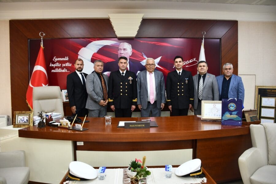 23 Nisan Ulusal Egemenlik ve Çocuk Bayramı dolayısıyla Ereğli’yi ziyaret eden TCG Kdz. Ereğli Savaş Gemisi komutanları, Belediye Başkanı Halil Posbıyık’a nezaket ziyaretinde bulundu.