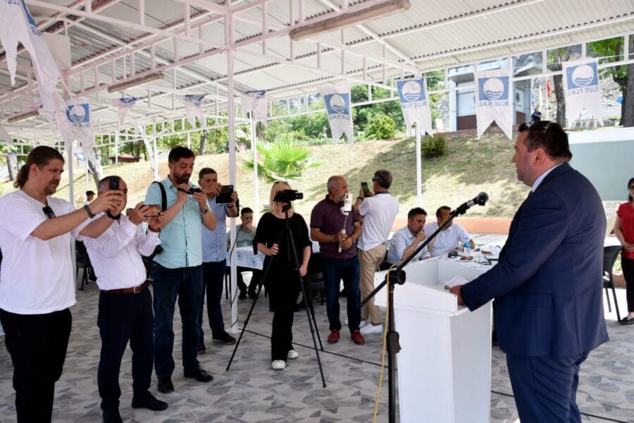 Basınla gerçekleştirilen çay sohbetinin ardından Başkan Halil Posbıyık, başkan vekili Nurullah Özdemir ve Rehabilitasyon öğrencileriyle birlikte plaja mavi bayrakları astılar. Belediye plajları her gün 08.30 – 20.00 saatleri arasında halkın kullanımına açık olacak.