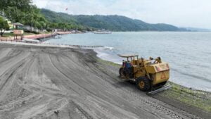 Kdz. Ereğli Belediyesi, yaz sezonu öncesi bölgenin çekim merkezi olan Sevgi ve Barış Plajı’nda kumsal temizliği yaptı. Mavi bayrak alan plaj kumsalı özel araçla taşlardan temizlendi, çıplak ayakla yürümek isteyenler için cam kırığı gibi kesici materyallerden arındırıldı.