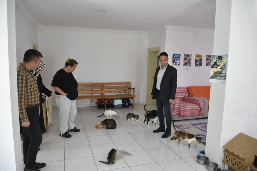 Veteriner İşleri Müdürü Erdal Terzi ve Veteriner Hekim Özgür Fahrettin Coşgun, daha sonra Gönülden Hayvansevenler Derneği’ni ziyaret ederek günün anısına kedi ve köpek maması desteğinde bulundu.
