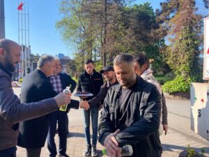 Beraberinde AK Parti Kdz.Ereğli İlçe Başkanı İbrahim Sezer, İlçe Yönetim Kurulu üyeleri, belediye meclis üyeleri ve partililer ile Erdemir ana kapıda işçileri karşılayan Bozkurt, “Kazasız belasız çalışma temenni ediyorum. Emeğin, emektarın, alın terinin, dayanışma ve yardımlaşmanın günü olan 1 Mayıs İşçi Bayramınız kutlu olsun. Hayırlı görevler” dedi.