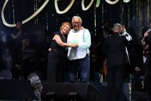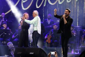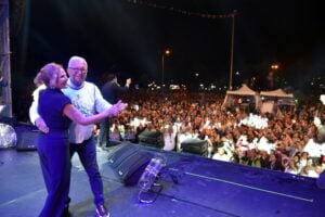 Başkan Posbıyık ve eşi Neriman Posbıyık, bir süre sahnede Kaya’nın şarkıları eşliğinde dans etti.