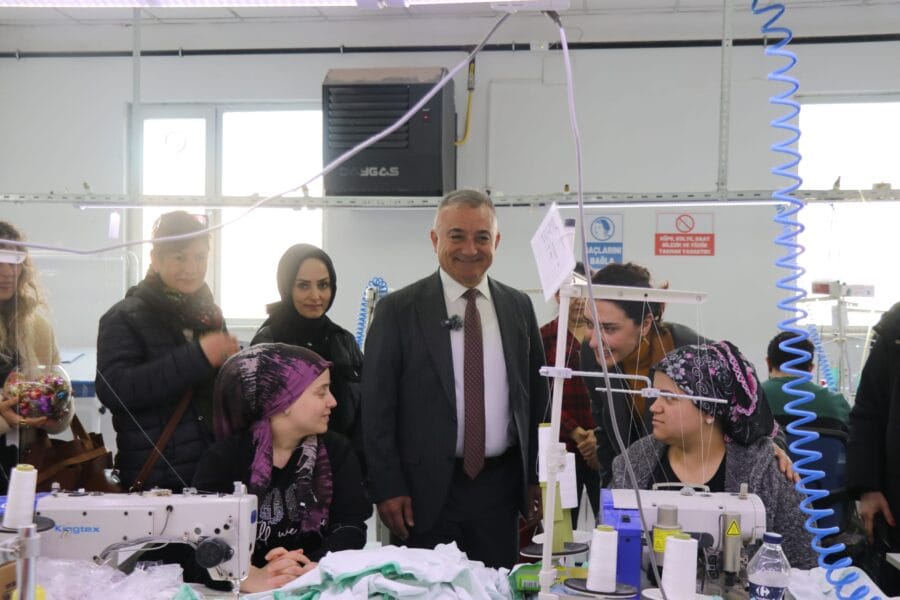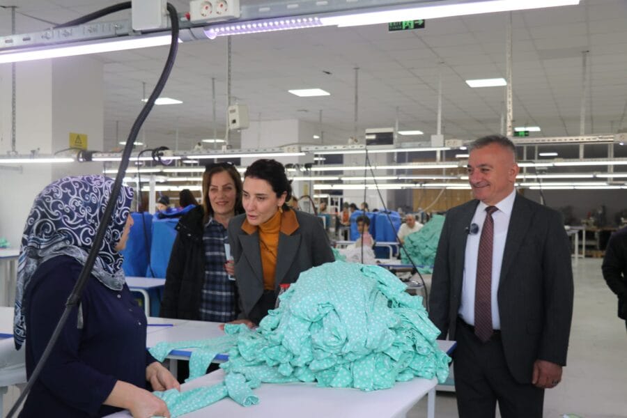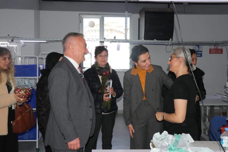 Sesli ile belediye meclis üyeleri çalışan tüm kadınları tek tek gezerek göreve geldiklerinde her zaman kapılarının kendilerine açık olacağını söyledi.