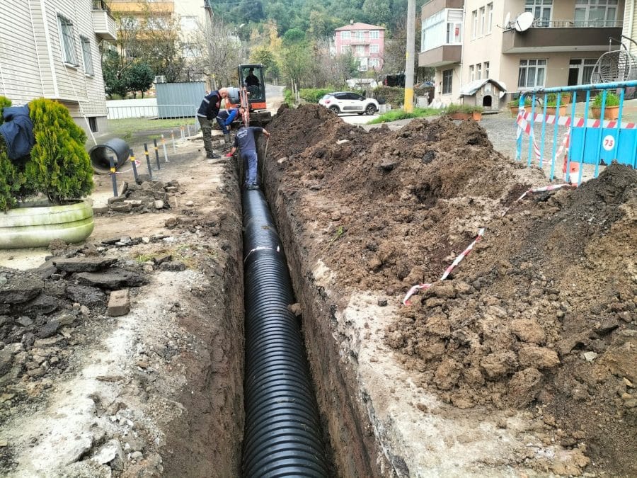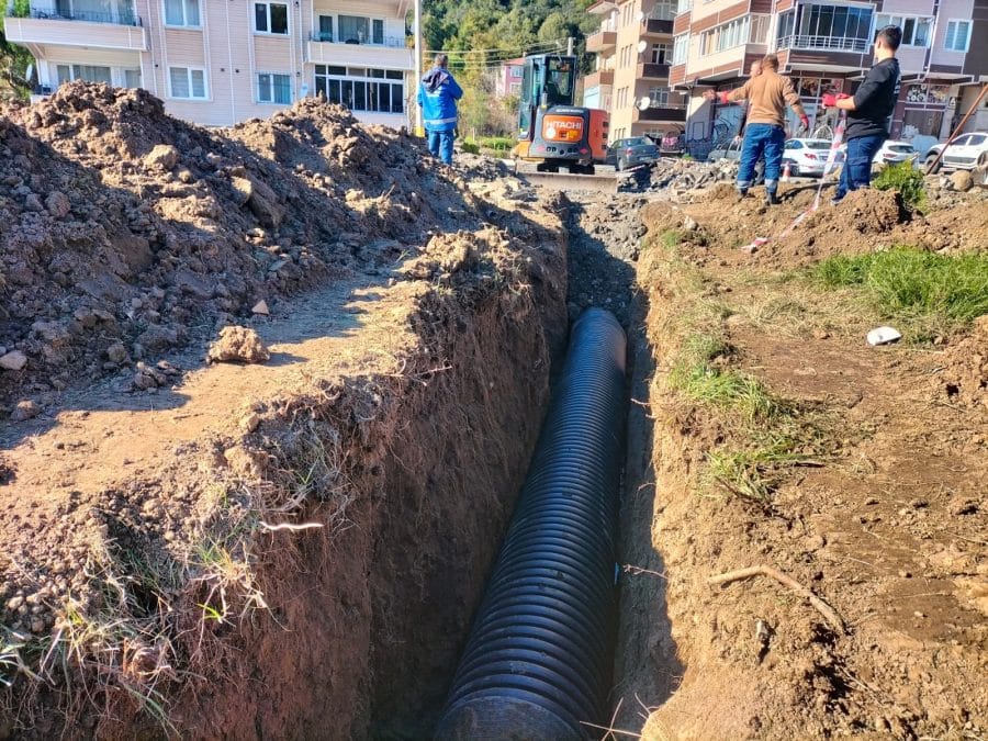 200 metre uzunluğunda ve 500 mm çapındaki Koruge borular kullanılarak yapılan bu hat, çevre binaları ve alt yapıyı olumsuz etkileyen su baskınlarını engelleme amacını taşıyor.